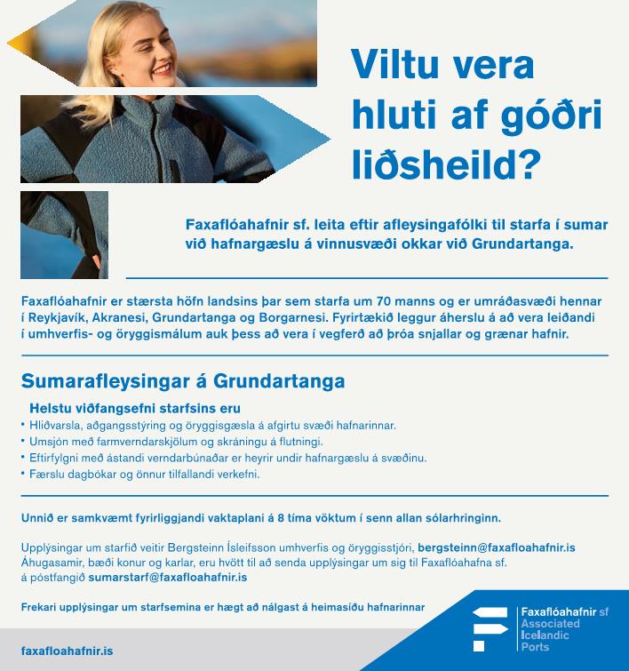 12. janúar 2022Faxaflóahafnir leita eftir sumarafleysingarfólki til að starfa við hafnargæslu á Grundartanga